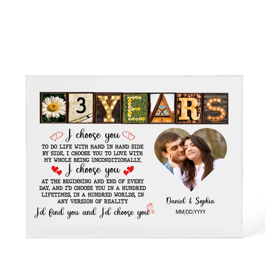 Personalized Acrylic Block, Happy 3rd Anniversary Gift For Husband And Wife, Custom Photo Gift For Couples, I Choose You Personalize Memories
