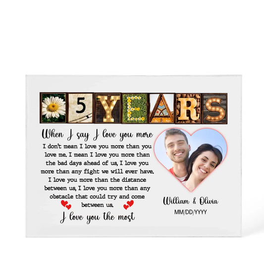 5th Year Anniversary Gift - Personalized Acrylic Block - 5th Anniversary Photo Present for Couples, When I Say I Love You More Personalize Memories