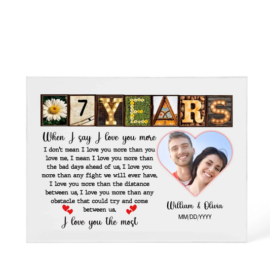 7th Year Anniversary Gift - Personalized Acrylic Block - 7th Anniversary Photo Present for Couples, When I Say I Love You More Personalize Memories