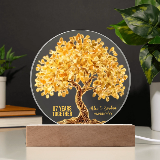 Anniversary Gifts For Seven Years - Personalized Acrylic Circle Plaque - 7th Wedding Anniversary Gifts