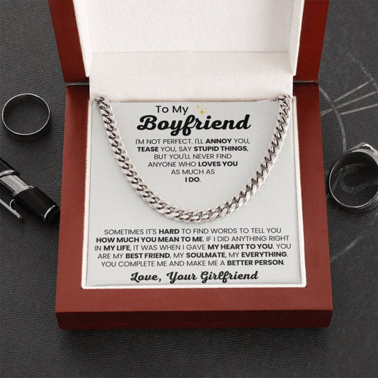 To My Boyfriend - Cuban Link Chain - Girlfriend to Boyfriend Anniversary, Christmas & Birthday Gift