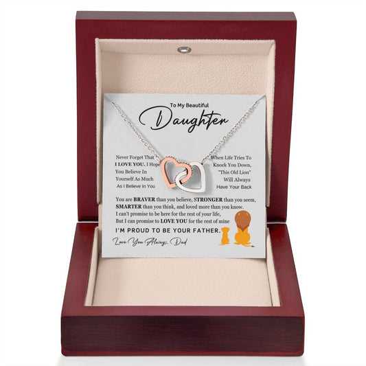 To My Beautiful Daughter Necklace - I am proud to be your father - Gift for Daughter from Dad - Interlocking Hearts Necklace
