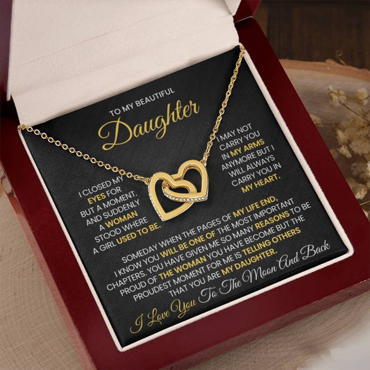 To My Daughter - I love you to the moon and back - Interlocking Hearts Necklace Gift for Daughter