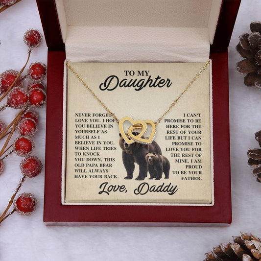 To My Daughter Necklace - Emotional Father to Daughter Jewelry for Birthday, Christmas & Life Happiness - Interlocking Hearts Necklace