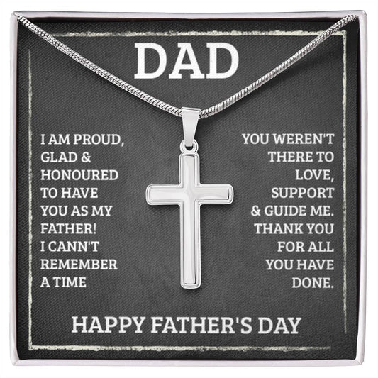 Dad - I'm proud - Artisan Cross with Cuban Link Chain - Father's Day Present