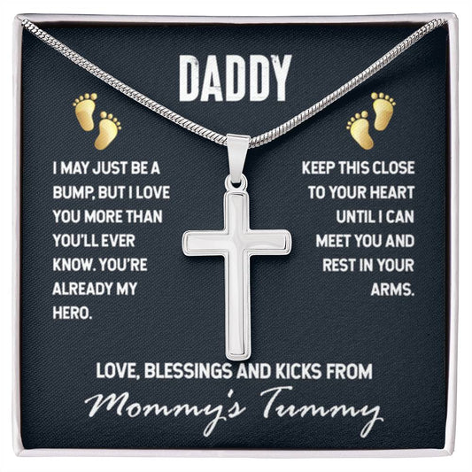 Daddy - I May Just Be A Bump - Artisan Cross with Cuban Link Chain Gift for Dad To Be