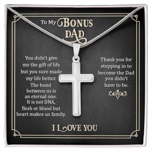 To My Bonus Dad - Artisan Cross Necklace Gift for Him