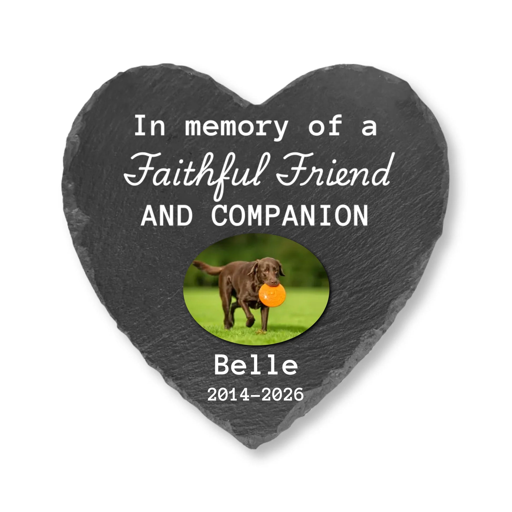 Personalized Dog Memorial Photo Heart Stone - Faithful Friend - Pet Remembrance Gift